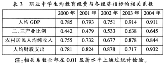 上述分析表明,目前我国职业教育经费投入严重短缺,家庭成本分担比例偏高,生均教育经费地区差距明显且呈现进一步扩大的趋势。为促进我国中等职业教育健康、持续、协调发展,需要不断加大经费投入力度,采取积极措施缩小地区间教育经费的差距。