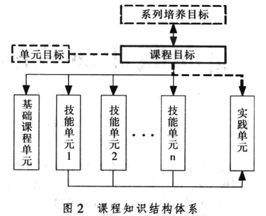 以课程为单元构建面向教学的知识结构体系是系列课程结构体系构建的重要源泉与有力保证,单元课程建设的成败与否直接影响到系列课程建设目标的实现。因此,单元课程知识结构的构建必须建立在系列课程培养目标的基础之上,要紧密围绕系列培养目标,在系列课程培养目标的指导下确立单元课程目标,进而构建其知识结构体系,如图2所示。
