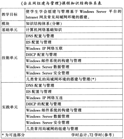 以下以《企业网组建与管理》课程的知识体系构建为例,具体说明单元课程体系建设(由于篇幅,一些具体过程从略)的方法,以供参考。