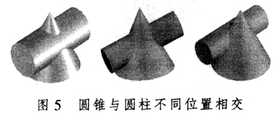 (四)根据SolidWorks2005参数化的设计特征,改变其位置与形状尺寸,分析其表面交线的变化,如图5所示。