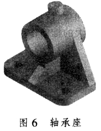(一)分析组合体构成,轴承座由底板、支承板、轴承、凸台、肋板五部分构成,如图6所示。图6为SolidWorks2005装配体(*.sldasm)文件。