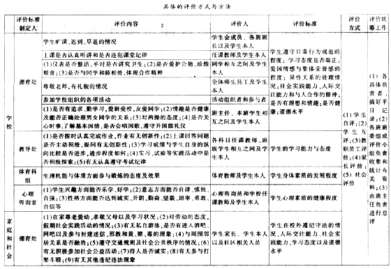 构建科学合理的德育评价方式与体系,发挥评价的教育功能是学校德育工作的重要内容。然而,长期以来,学校德育的评价主体单一,即学生最后的定性完全由班主任一人决定。实践中,德育工作形式走过场,内容空泛,缺乏激励的动力,结果导致失去了对职校学生真实的评价。正因为这种评价的不客观、不公正,使得职校学生觉得好与坏、干与不干、干多与干少都一个样。教育部制定的《中等职业学校德育大纲》明确指出,对学生品德的测评,要在坚持科学性、客观性、教育性、民主性等原则的基础上实施。因此,改革对学生现有的评价模式势在必行。