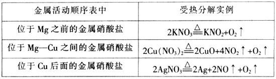 这是认识过程的一个飞跃,要完成整个认识过程,还必须进一步向学生提出探索性问题:三种硝酸盐受热分解的产物不同的原因是什么?让学生进行发散性思维、进一步集中讨论,讨论中教师可用“谁还有不同的见解”之类的语言来引导学生向着不同方向发散思维。通过多次发散思维、集中讨论,学生深刻认识到三种硝酸盐受热分解的产物不同的原因主要是金属离子所致。Ag+易获得电子而被还原成不活泼金属Ag(加热Ag2O易分解为Ag和O2);在金属活动顺序表中,从Mg2+—Cu2+在氧气存在下加热,不可能还原为单质,相反,它们的单质在加热条件下都易跟氧气反应生成氧化物;至于Mg前面的金属硝酸盐,一般加热时NO3-中N5+被还原为N3+的NO2-。认识提高后,师生共同总结出不同金属硝酸盐受热分解的规律如下表,达到了对硝酸盐受热分解规律的理解和掌握。