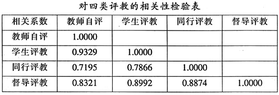 创新综合评价领域,开辟教学质量保障新途径所谓综合评价是指“对评价的评价”。教师教学效果评价的结果由学生评教、督导评教、同行评教、教师自评四部分组成,有时会出现仅凭感性认识的片面言论,使教师教学评价的结果偏离自身的期望值,不利于评价工作。本校以教师自评为基础,运用统计学中的相关性概念,分别求解学生评教、同行评教与督导评教的相关系数,通过对评价数据的再综合以理服人,同时,这种综合评价也促使原始评价数据的采集工作不断改进,保障了评价结果的科学、合理、有效,确保了教学评价工作健康有序的开展(见下表所示)。按照统计学理论,相关系数在0.3以下呈无相关性、0.3~0.5为低相关、0.5~0.8为显著相关、0.8以上为高度相关。以教师自评为基础,学生评教与教师自评的相关系数为0.9329,同行评教与教师自评的相关系数为0.7195,前者高于后者,充分说明在教学评价中学生评教的可信度。同行评教由于教师同行评教问卷调查表的小样本统计少于10份,因此存在一定程度的统计误差。这充分显示了综合评价的重要性与不可替代的作用,提高了教学评价的科学性与有效性,开辟了教学质量保障的新途径。除此之外,还可以通过统计学中的参数检验法、线性回归法、正态分布理论等多维度进行综合评价工作。