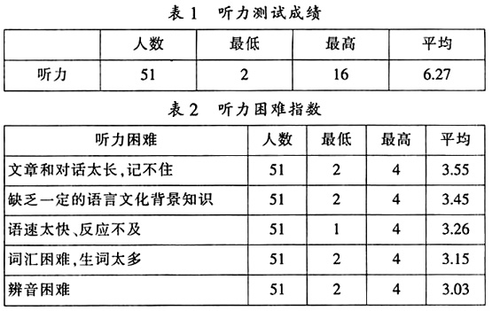 缺乏一定的语言文化背景知识是学生听力理解的第二大障碍多数学生知识面狭窄,对英、美等国的历史文化以及国内外时事知之甚少。试题中包含的人物对话材料,由于缺乏背景知识的铺垫、不了解中西方生活习惯的差异,导致理解偏差现象非常严重。