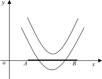 例2.已知点A(1,0),B(3,0),若抛物线y=x2+ax+2,(a∈R)与线段AB有两个不同的交点,求a的取值范围。(如图3所示)