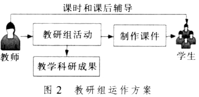 教研组运作方案(如图2所示)以教研组为主体,对教学进行研究,利用团队的力量制作出可以自动教学的课件。学生上课学习过程中,学生面对的不再是单个教师的教导,而是整个教研组的全体教师的智慧,从而减少因不同教师对学生学习影响带来的差距。在这种运作方案下,一个学校对单一课程的教学的水平不再因教师的一时失误而受影响。从而保证学校的教学水平表现从根本上与教学实力一致。