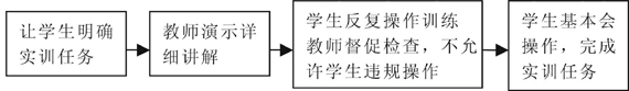 在这种实训教学模式中,教师将教学重点放在了详细讲解和纠正学生不规范的操作方法与步骤上,学生无须尝试去想“为什么要这样操作”、“该怎样做”、“还有无其他更好方法”等一系列问题。在整个实训过程中,学生的好奇心和思考冲动等内在动力被教师的详细讲解所抑制,学生的主动性受到压制和阻碍,也就难以在实践中探索、发现和求新,其结果仅仅是机械、被动地获得技能。