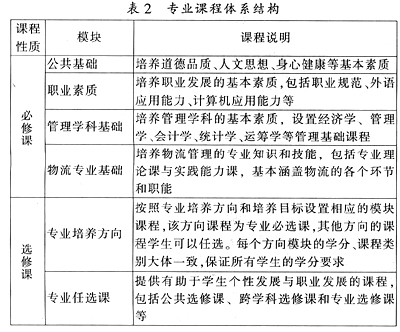 专业培养方向与培养目标专业培养方向应综合考虑区域经济发展、物流专业的行业和产业背景、需求岗位类型、资源优势、办学特色等因素,走示范性和特色化的人才培养道路,并依据专业培养方向对应的岗位技能要求确定培养目标和教学体系。