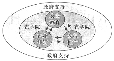 美国的农业教育有140多年历史。其农业教育的核心体现于其完善的农业科教体系。联邦及州、县政府拨款资助各州、县建立推广服务体系,推广工作由农业部和农学院共同领导,农学院具体负责。美国已经形成了农业教育、研究与推广三位一体、统一管理的格局。农学院统管全州的农业教育、农业科研与农技推广工作。州试验站也由农学院管理,并且在全州各地设立分站或分场,结合当地的生产课题进行研究。农学院的教师有1/3~1/2参加试验站的研究工作,试验站的专业研究人员中约60%兼有农学院的教学任务。此外,全国还创办了俱乐部,帮助农村青年学习各种专业技术,提高他们的经营管理能力。美国各级政府对农业科研与推广等方面的财政支出不断增加,建立了大量的农业科研机构,并配备了相当数量的高素质农业科技人员。