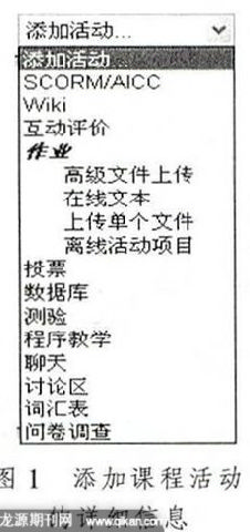 在魔灯平台上,课程管理员可以创建某一课程的活动,并有编辑此课程相应活动的权限。使用一个账号登录此课程后,可以为该课程添加各种活动。下面来看看添加课程活动的详细信息,如图1所示。
