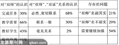 表1 教师对“双师”、“双证”的认识