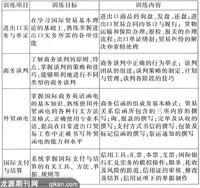 以单项技能训练为基本训练项目单项技能训练是以单个的训练项目为内容,以提高学生的应用能力为目标。例如,市场营销、商务谈判、外贸函电、进出口实务与单证、国际结算等为商务英语专业基本的实训单元项目,训练计划依次有序地进行,内容设置要相互串联,不可条块分割。通过实训,学生在完成各个单元项目的训练后,就会逐步具备商务工作必备的各项技能;而各单元的训练内容相互联系,梯次进行,前面训练的内容和技能为后面的单元项目训练奠定基础,极大地提高了学生的积极性和主动性,使他们认识到:只有学好、练好各个项目单元的技能,才能融会贯通,比较系统地掌握各项技能,为以后在实际工作岗位从事商务贸易工作做好准备,成为企业需要的合格人才。