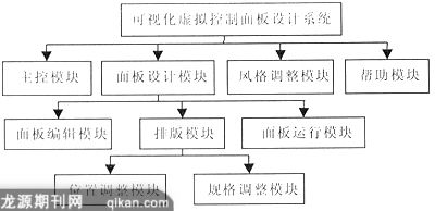系统由以下主要模块构成(如图1):(1)主控模块:系统的主要功能模块,负责调用和控制其他程序模块。(2)风格调整模块:允许学生根据自己的喜好对系统的环境参数进行设定如工作区背景颜色的设定、编辑区中控制点的色彩设定、是否显示编辑区栅格、是否对齐到栅格等。(3)面板设计模块:包含面板编辑模块、排版模块、面板运行模块。学生通过面板设计模块设计自己需要的面板。在面板编辑区,学生用鼠标拖拉自己所需要的图元控件到编辑区中,然后设定图元控件的各种属性值和图元控件间的调用信息,用鼠标拖动控件生成图元叠加队列;对比数控机床控制面板的外观布局,通过排版模块对单个图元控件或一组图元控件进行位置或者规格大小调整,最后形成虚拟控制面板文件,调用面板运行模块,运行面板,查看运行效果,若效果不能满足需要,则切换回编辑模块进行修改调整,若效果满足需要,则保存面板文件。(4)帮助模块:提供系统操作说明和系统版本说明。