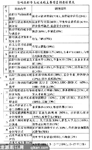 归纳分析各种调查检索结果发现,影响高职学生就业的主要因素为: