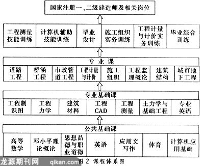 根据专业建设需要,我们建立了专业教学指导委员会,邀请来自行业、企业第一线的技术专家和管理专家,与学校专业教师一起,对各专业对应的职业岗位或岗位群所需要的职业能力以及构成这些能力的知识、技能、经验、态度等要素进行详细分析,确定各专业的综合职业能力要求。按照职业能力的培养要求,以职业为轴心,从“怎样做”入手,按职业活动的内在逻辑来选择和组合教学内容,构建以实践教学为核心的课程体系。整个课程体系由理论教学体系和实践教学体系两大部分组成。理论教学主要由公共基础课、专业基础课和专业课三大部分组成。其中公共基础课属于一般教育的范畴,主要目的是培养学生具有一定的分析与解决问题的能力,重在传授基础知识。专业基础课主要是培养学生掌握与职业岗位(群)相关的知识和技能。学生经过学习这些课程,实际也是培养土木专业必备的基本能力,一方面为学生的可持续发展做好准备,另一方面也为学生继续学习打好基础,着眼于转岗能力和职业关键能力的培养。专业课程是为本专业必备能力的培养而设置的,这些课程是整个理论课程中的核心。