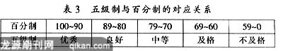 市场调研成绩评定主要考虑调研过程中学生的学习态度、考勤纪律、调查问卷、调研实施和调研报告五个方面,依据基本要求进行分项考核,最后计算总分。调研成绩采用五级制。五级制与百分制的对应关系见表3。各方面具体要求为: