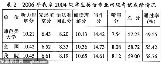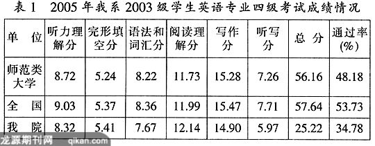 研究考试信息,狠抓学生的薄弱环节2005年,我系2003级英语专业的学生在全国英语专业四级考试的通过率仅为34.48%,比全国平均通过率低18.95%(见表1)。