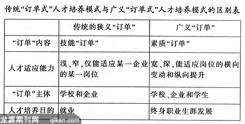 保持“订单”的动态性传统“订单”具有更多的静态特征。“订单”一旦签订,学校就会按照“订单”培养学生,很少关注市场对人才需求的变化以及企业的经营管理状况,结果造成企业和学校的多方面脱节。保持“订单”的动态性,需要“订单”双方密切合作,企业对学校的人才培养进行质量监控,学校则对企业的经营状况和人才需求变化进行监控。另外,对于学校来说,成立职业研究所,对宏观环境、人才市场需求信息及企业运作情报进行信息搜集和分析是保持“订单”动态性的重要手段。