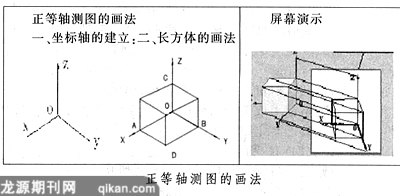通过教师的板书演示,学生能够掌握画坐标轴时,三角板如何配合画各坐标轴之间的夹角120度;也能够掌握画长方体时该如何下手,最后如何连接。如果仅靠多媒体课件来演示,学生只觉得有意思,却掌握不了画法的本质,在课后作业中,就会出现不会画或画不准确的问题。