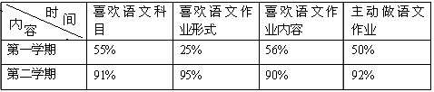 从初一第二个学期开始,我按照以上的策略设计个性化作业。为了验证学生的学习效果,我对学生做了“语文个性化作业形式和内容改革前后对比的问卷调查”。调查问卷共120份,收回有效问卷118份,有效率98.3%。调查部分结果显示: