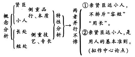 进一步综合,确定中心论点:“亲贤臣,远小人”是用人之准则。