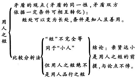 再对“容人之短”和“用人之短”分别进行具体分析,揭示其与拟定的中心论点之间的关系。